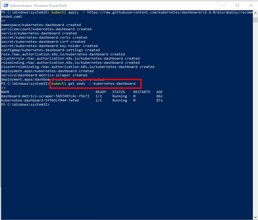 https://raw.githubusercontent.com/kubernetes/dashboard/v2.6.0/aio/deploy/recommended.yamlGo to Windows PowerShell and Run as Administrator and run the below command: