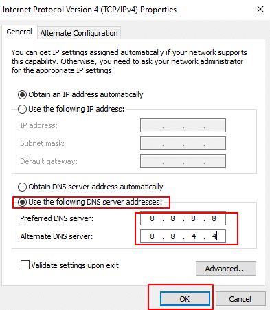 - 8.8.8.8 and 8.8.4.4 (Google DNS), or