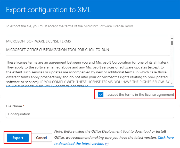 - Check the box next to Click here to accept the Microsoft Software License Terms