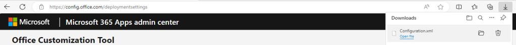 12. You can see the Configuration.xml is downloaded on the top right corner of the page.