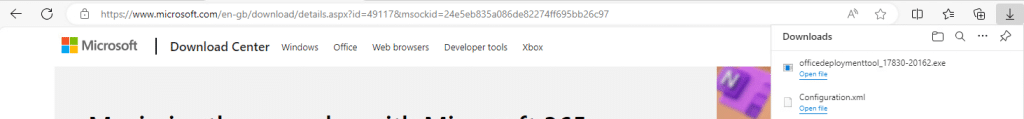 14. You can see the officedelpoymenttool_17830-20162.exe is downloaded on top right corner of the page.