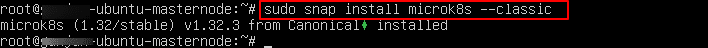 3. Install MicroK8s by running the below command on the master node: