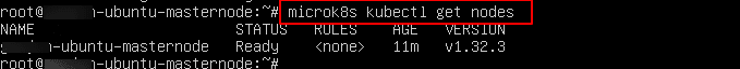 You should see output like: “microk8s (1.32/stable) v1.32.3 from Canonical installed”.