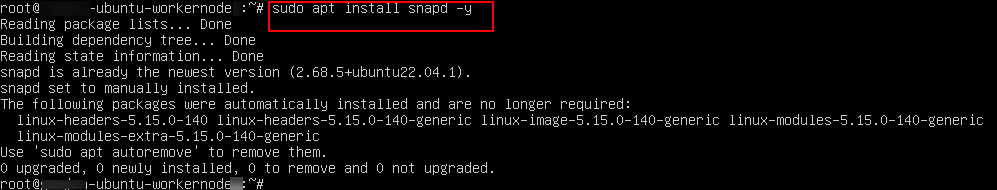 2. Now, install snapd just as you did on the master node.