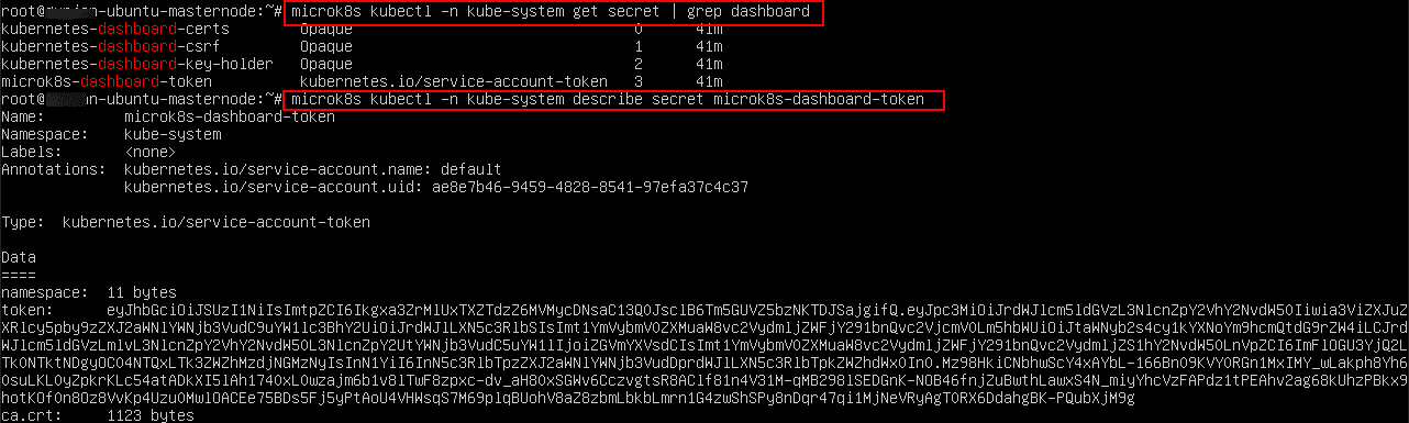 microk8s kubectl -n kube-system describe secret kubernetes-dashboard-token